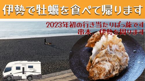 https://youtu.be/tz4wVvT889E 姫路で行われたディスク大会後、暖かいところへというワケで串本、伊勢を巡る遠回り帰宅旅4日目は最終回です。 道の駅 熊野・花の窟は七里御浜に面しています。日本で一番長い砂礫海岸にオレンジ色に輝く日の出はステキな景色…