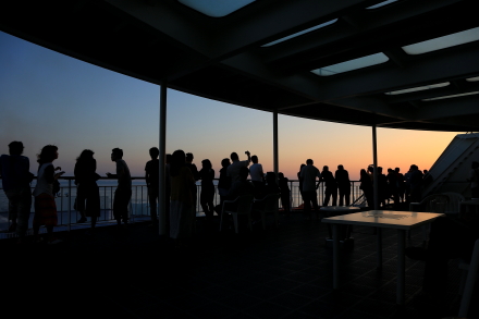 日本海上で迎えた朝 散歩がてら朝日を拝みにデッキへ